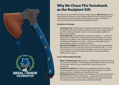 In the Box: Berserker Ax, Kydex sheath with Low-Ride M.O.C. Straps, Patriots Award Gala Book, MOH Challenge Coin, User Documentation