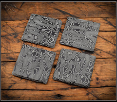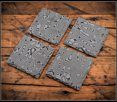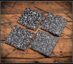 4" Square and 4" Round, Slate Coaster Sets. There are 4 coasters in the set, each coaster has 4 rubber supports on the bottom.